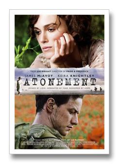 Plot: In 1935, 13-year-old fledgling writer Briony Tallis (Saoirse Ronan) and her family live a life of wealth and privilege in their enormous mansion. On the warmest day of the year, the country estate takes on an unsettling hothouse atmosphere, stoking Briony's vivid imagination. Robbie Turner (James McAvoy), the educated son of the family's housekeeper, carries a torch for Briony's headstrong older sister Cecilia (Keira Knightley). Cecilia, he hopes, has comparable feelings; all it will take is one spark for this relationship to combust. When it does, Briony -- who has a crush on Robbie -- is compelled to interfere, going so far as accusing Robbie of a crime he did not commit. Cecilia and Robbie declare their love for each other, but he is arrested -- and with Briony bearing false witness, the course of three lives is changed forever. Briony continues to seek forgiveness for her childhood misdeed. Through a terrible and courageous act of imagination, she finds the path to her uncertain atonement, and to an understanding of the power of enduring love.